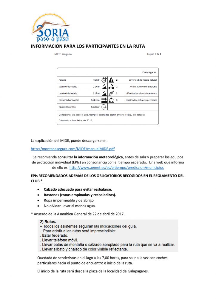Punto de reunión e inicio de ruta: en Galapagares a 70 Km aproximadamente de Soria