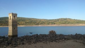 Iniciamos la ruta en Vinuesa para visitar los restos del pueblo de La Muedra normalmente invisible bajo las aguas y que la actual sequía ha dejado a descubierto.