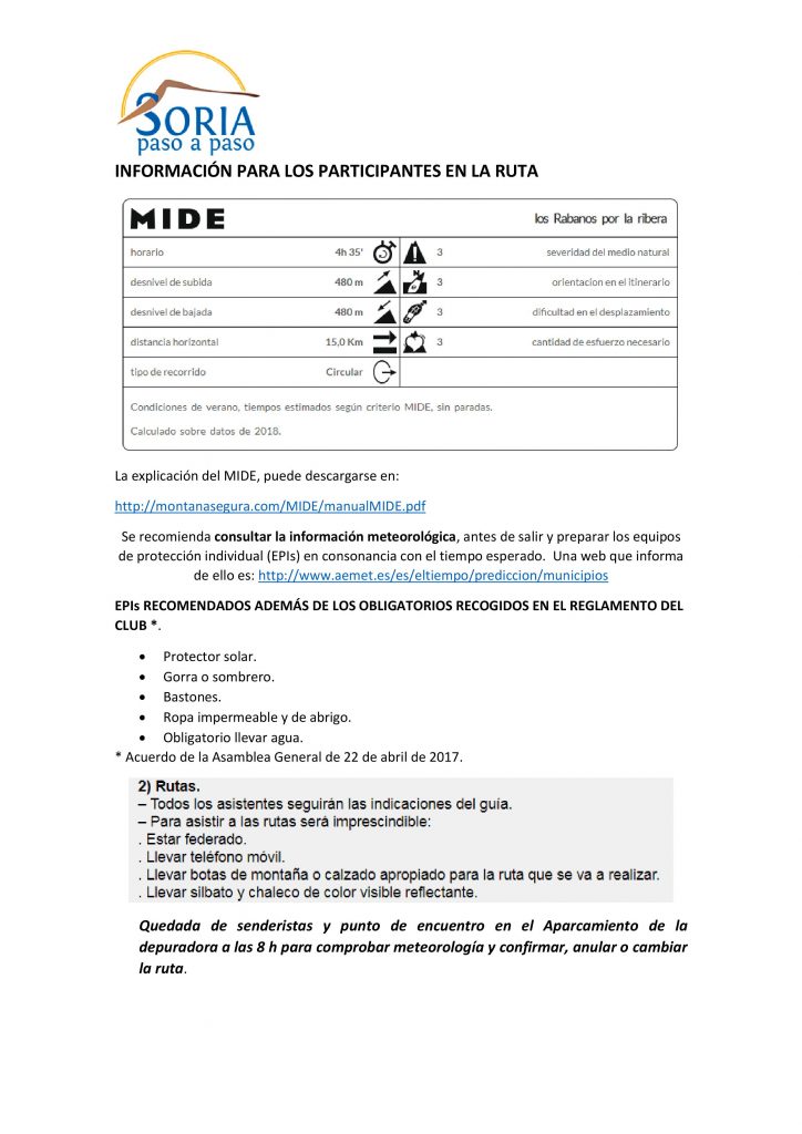 Inscribiéndose en la ruta declara haber leído y comprendido las normas anteriores y autoriza el tratamiento de los datos personales facilitados y que se hagan públicos a través del listado de inscritos en la actividad. Puede ejercitar sus derechos de acceso, rectificación, cancelación y oposición dirigiendo un mail a soriapasoapaso@gmail.com