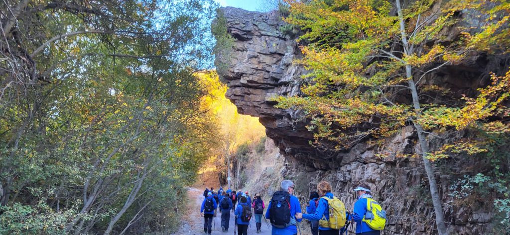 Terminado el rato del bocadillo, emprendemos la marcha por la cómoda pista que iniciamos a las 9,30 h., camino de nuestro punto de partida. Nos sentimos satisfechos del recorrido realizado. Y lo expresamos en nuestras conversaciones. Y allí, en las cercanías donde antes contemplamos la llamada piedra Cubrecaminos, nos hacemos la foto del grupo, que deja testimonio gráfico de nuestro paso por estos pagos riojanos.