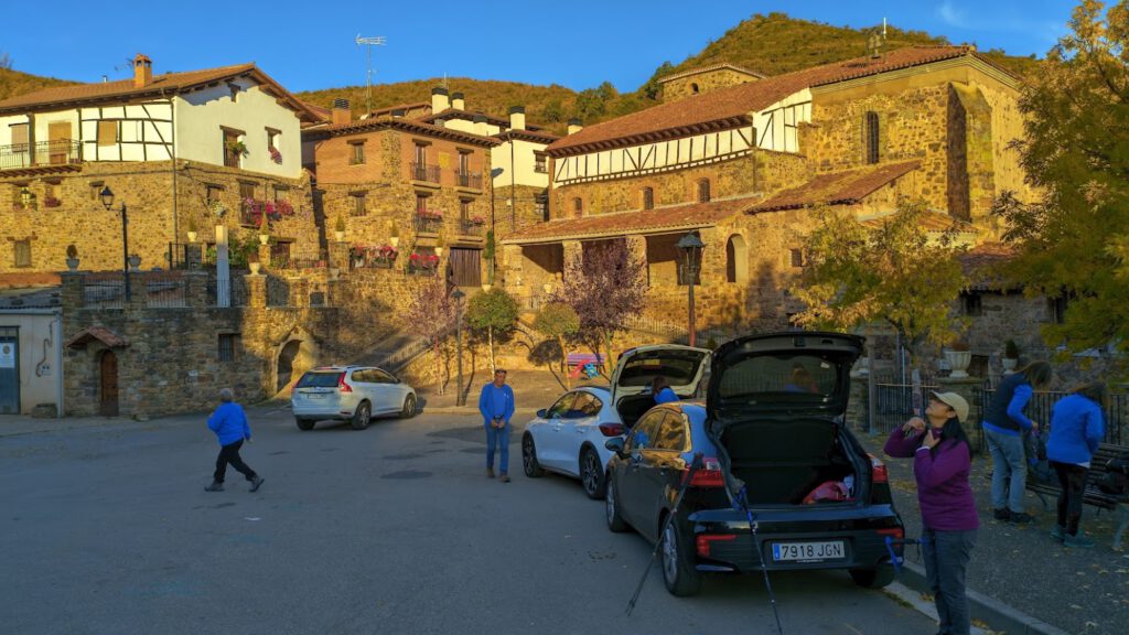 Y ya, sí. El siguiente cambio de dirección que haremos en el próximo cruce, será para llegar hasta Ajamil de Cameros. Una pequeña y pronunciada cuesta nos introduce de lleno en una espaciosa plaza del pueblo, donde aparcamos los coches. Nos espera allí Alfonso, natural del municipio, y amigo de Jesús, quien nos llevará por la ruta trazada para mostrarnos los encantos naturales que encierra este pedazo de la tierra camerana.