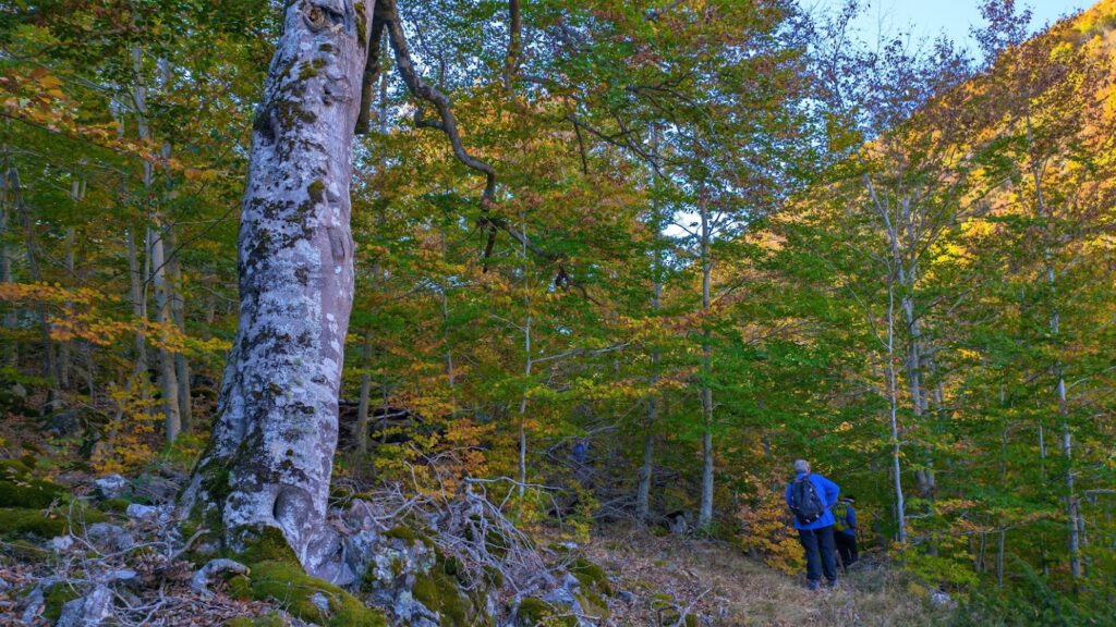 El paseo por este bosque de hayedos es una cura de tranquilidad, en contacto permanente con la naturaleza. La caricia del aire en la cara y el cascabeleo de las hojas son sensaciones maravillosas que merece la pena experimentarlas, disfrutarlas y recomendarlas. La prolongada sombra del lugar, producida por los árboles, parecen danzar a un tiempo con los rayos de luz que atraviesan, como pidiendo permiso a la majestuosidad de hayas centenarias, a veces también con la presencia tímida de algunos arces y en la parte más septentrional no faltan algunos ejemplares de pino silvestre.