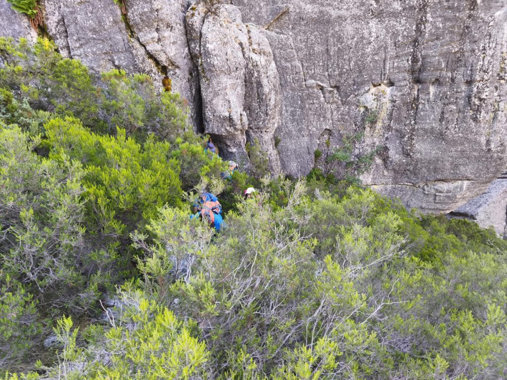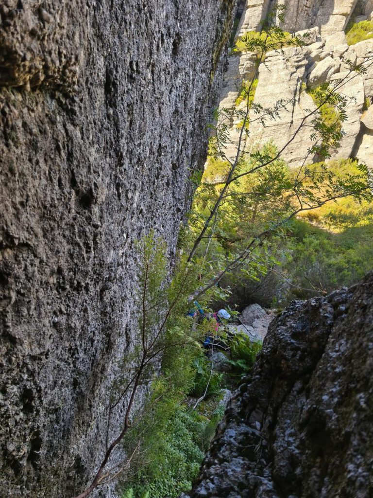 Todos los asistentes deciden bajar por lo que el grupo sigue completo. La bajada resulta menos complicada de lo que en principio parece,