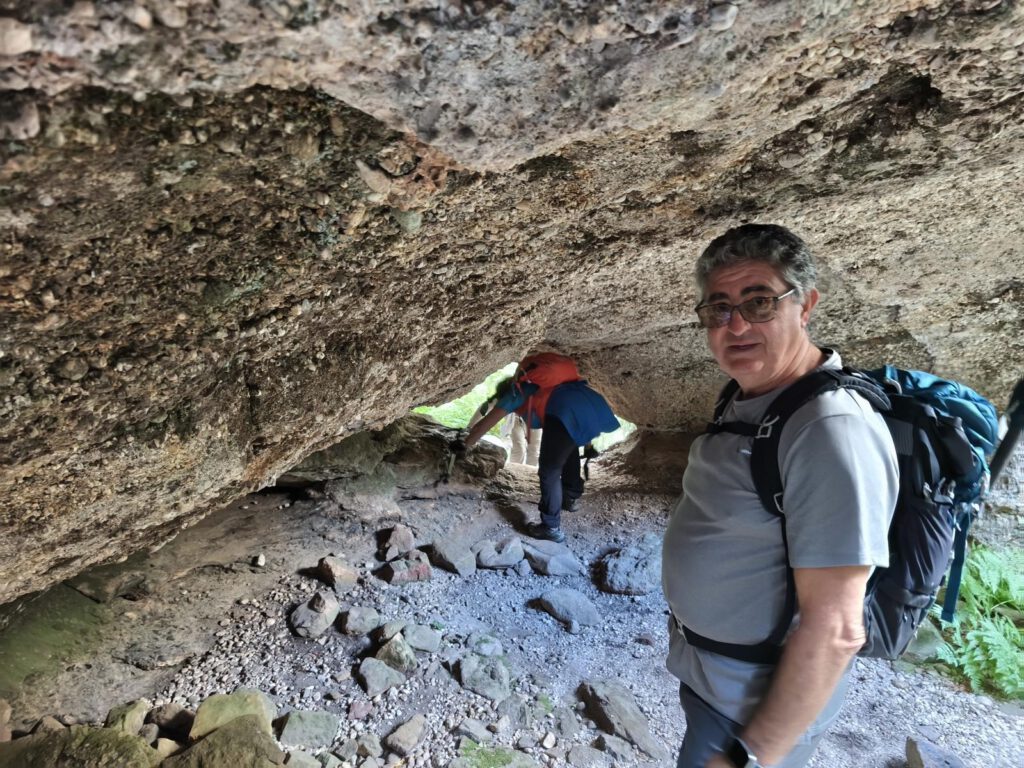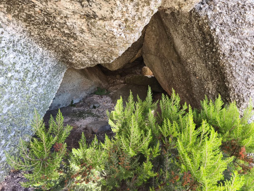 Destacar que es muy fácil elegir el sendero inadecuado y perderse entre los brezos, yo de las al menos cinco veces que lo he visitado siempre he salido por sitios distintos y casi siempre mal. Esta vez encontramos una buena salida y podría decir que no nos perdimos. Y pasamos por una pequeña cueva.
