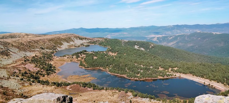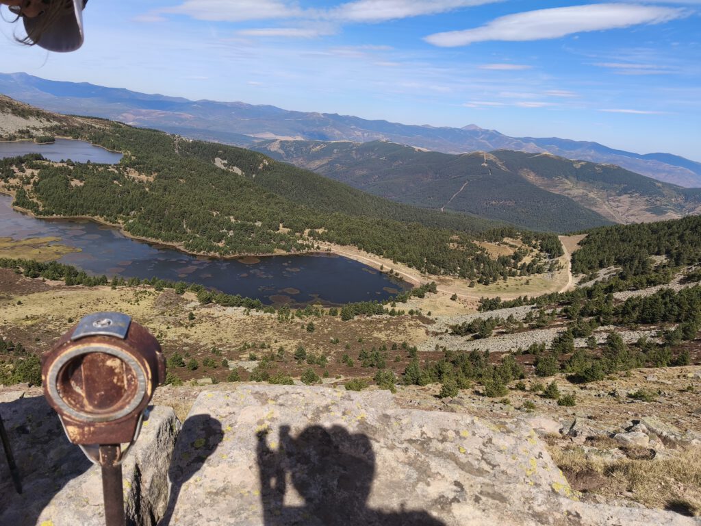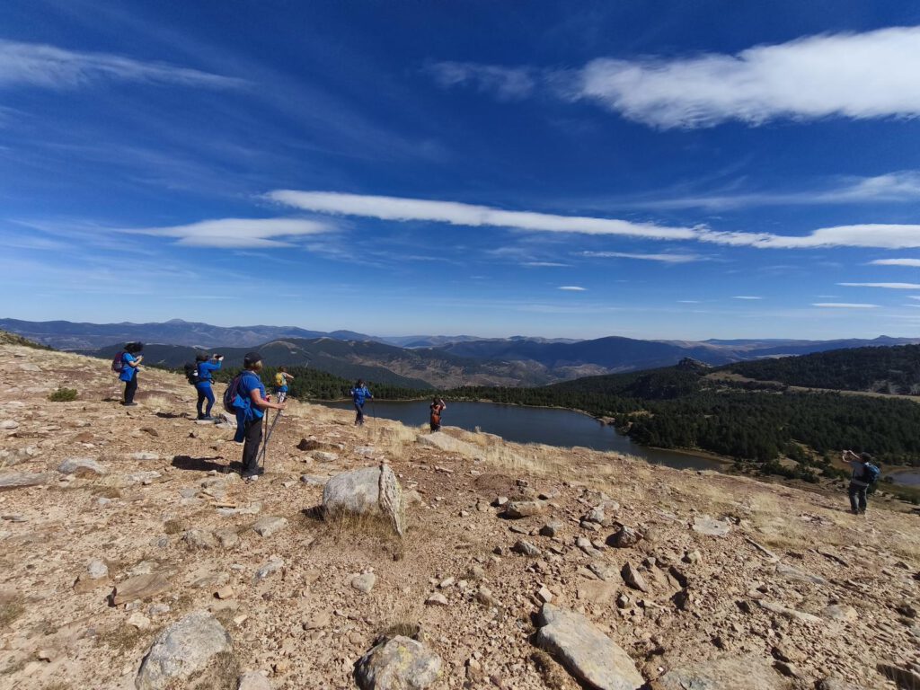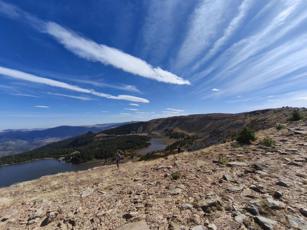 Las vistas de las lagunas de Neila al hacer cumbre en la sierra y el paseo por el cordal de la sierra hasta el punto geodésico del Alto de la Campiña,