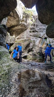 Buscamos el acceso al cauce del rio por un punto que requiere un destrepe que puede obviarse por otro punto pero que hace difícil visitar parte de sus maravillas.