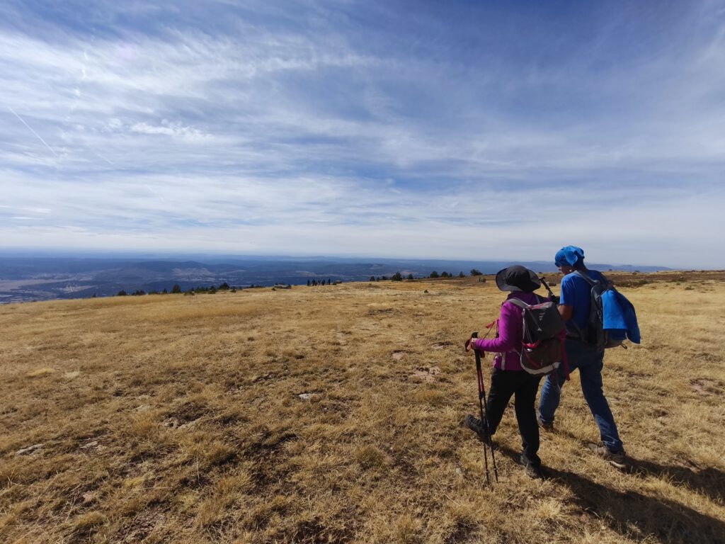 La subida por la campiña son unos tres kilómetros y trescientos metros de desnivel hasta el alto de la Campiña 2.044 m, con senderos desdibujados hasta llegar al alto de la sierra de Neila, en este punto el grupo se estira ya que la pendiente y que el piso no es de lo más amable.