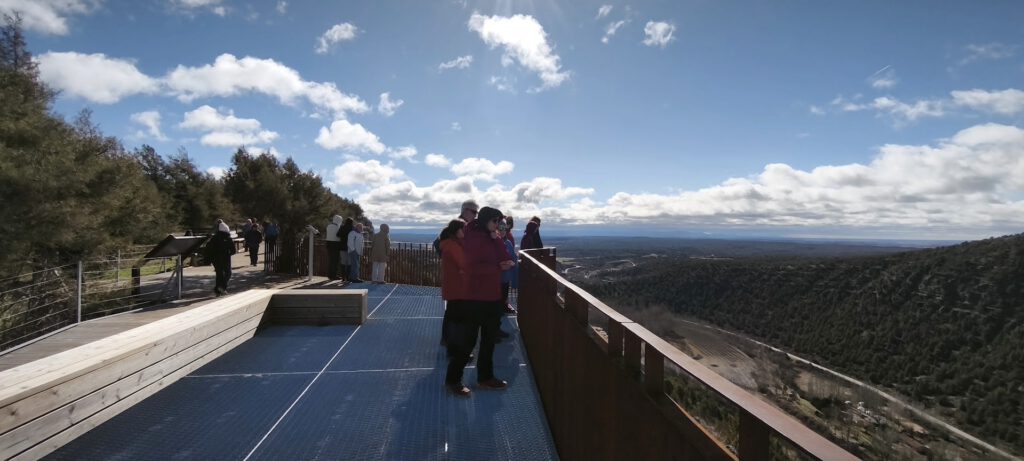 La segunda visita que hacemos es al nuevo mirador de la Galiana que se trata de una moderna construcción suspendida sobre los 150m de cortados y desde donde se aprecia toda la majestuosidad del cañón que es Parque Natural desde 1985 y también el detalle, puesto que tiene prismáticos y un par de puntos estratégicos para ver la catedral del Burgo de Osma y el Castillo de Ucero.
