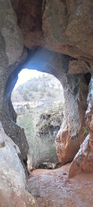 El regreso es por el mismo camino. Durante la subida desde la ermita, realizamos una pequeña escalada que nos conduce hasta otro gran agujero conocido como el “Ventanón”. Desde este punto, es posible contemplar una panorámica impresionante del cañón, además de percibir de nuevo con gran intensidad el viento que atraviesa la abertura.