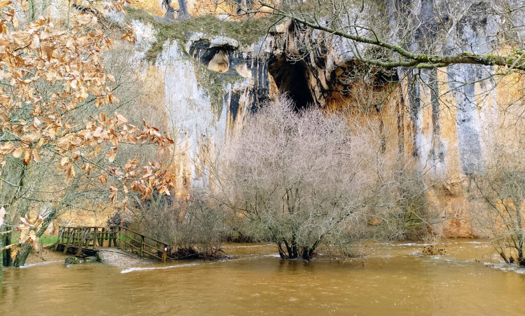 Hoy S. Bartolomé está aislada de Cueva Grande, el meandro en el que se sitúa está rodeado de agua y en estas circunstancias el autor fluvial del cañón que hoy se hace notar especialmente con su imponente caudal y fuerza es el protagonista de la foto grupal.