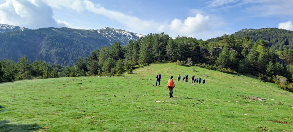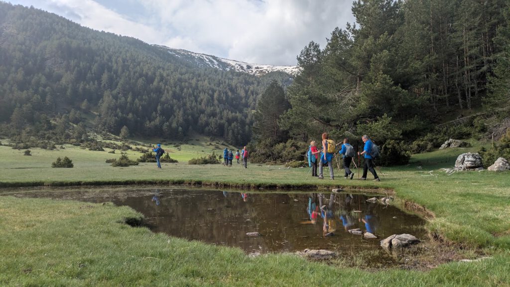Nos quedaríamos más, pero hemos de retomar la marcha cruzando la extensa pradera, tan parecida a las pirinaicas, pero ésta perteneciente a la a veces seca Castilla y al casi desconocido Circo Glaciar de Riofrío y sus cumbres montañosas como Muñalba o Tres Provincias.