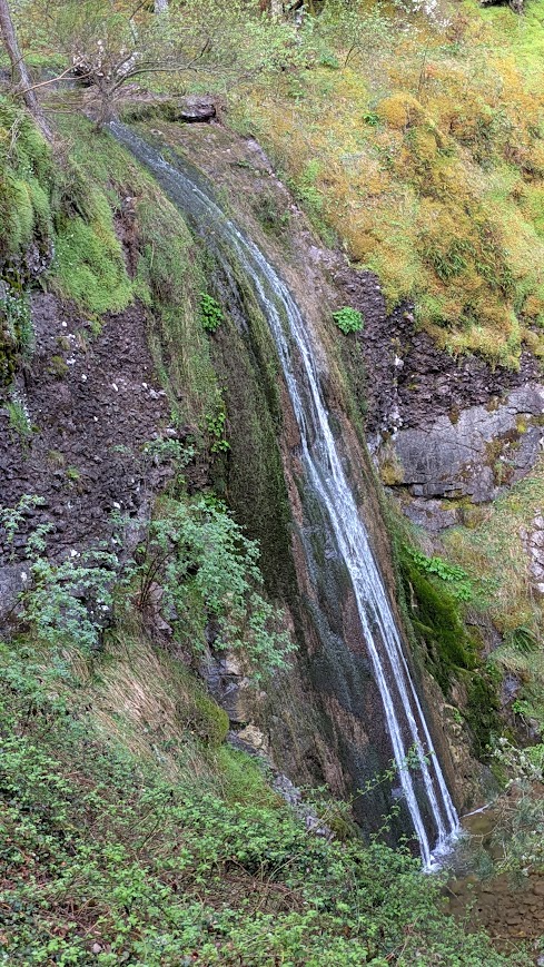 Una vez que salimos al sendero el paisaje es una preciosidad, tiene el encanto de la primavera con el verde claro e intenso de las hojas recién nacidas de las hayas y la hojarasca rojiza del hayedo desprendida en otoño que, humedecida tras la noche, se ve brillante y tan fresca que parece que acaba de caer. Hayas centenarias cubiertas de musgo, ramas de las que penden girones de líquenes y el sonido del río al fondo del barranco terminan de componer un paisaje para el recuerdo.