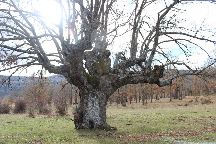 huellas recién hechas, robles centenarios y muy al principio nieve diminuta en
