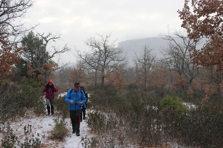 fina capa de nieve escarchada que dejaba ver las hojas secas, senderos con
