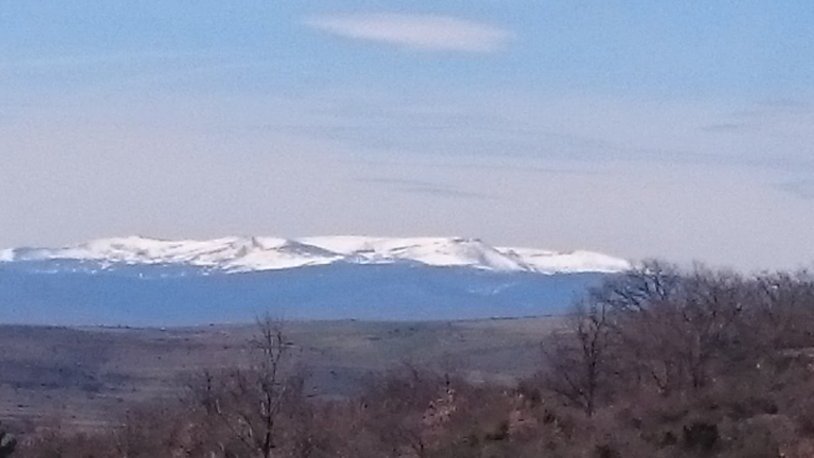 En la lejanía se dejaba ver las sierras de Cebollera y Urbión con un bonito manto de nieve en su cima, llegando a la Peña del Calvo donde se encuentra el Chozo Redondo.
