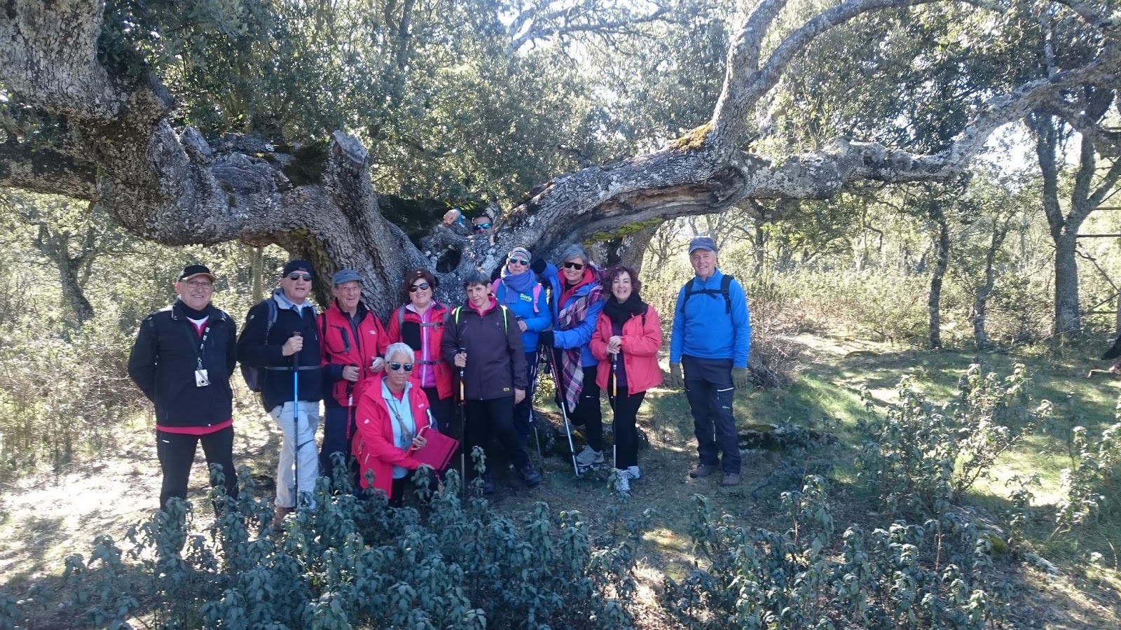 Caminábamos entre encinas, robles, chopos y arbustos de monte bajo camino de encontrar la encina centenaria en sendas estrechas esperando encontrar la encina centenaria que, según informaciones se la conoce como «chaparra del Obispo»