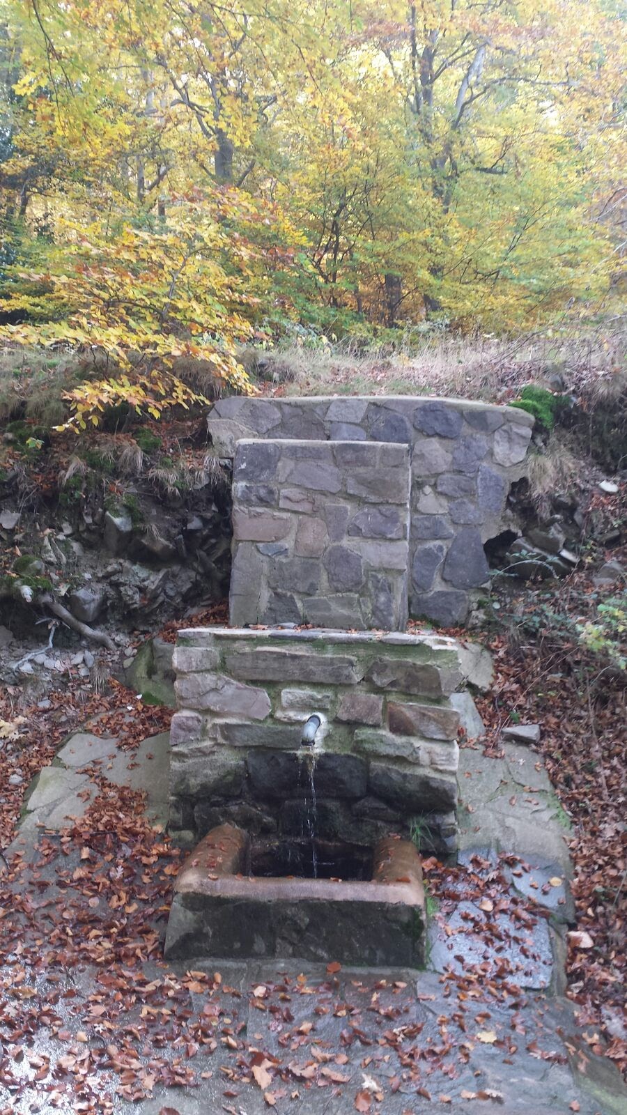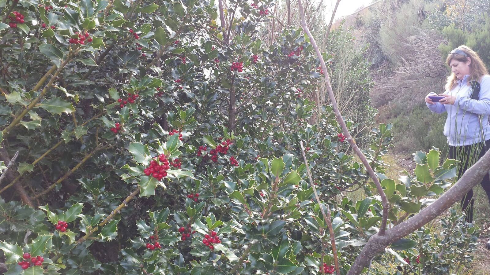 Entre arroyos, y al borde del camino majuelos, escaramujos, y acebos llegamos a una fuente donde probamos su fresquísima agua.