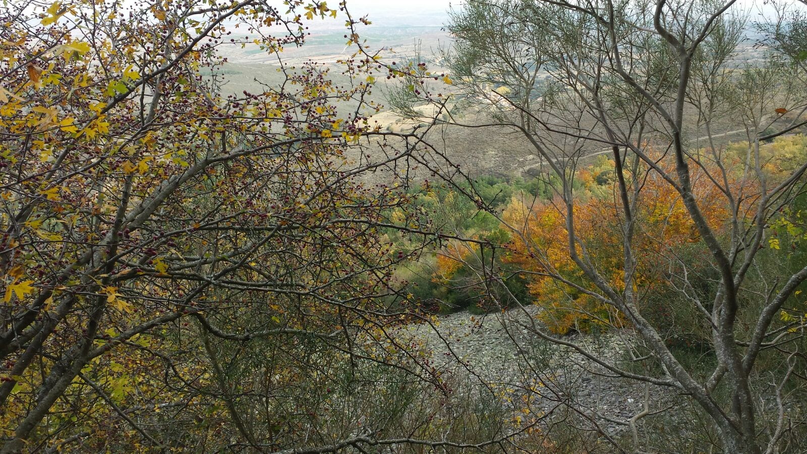 Desde aquí, iniciamos la ruta, caminamos por amplio camino, cruzamos el barranco de los Prados, por una pequeña pasarela, y comenzamos a ganar desnivel de forma suave, con vistas a la población de Vozmediano.