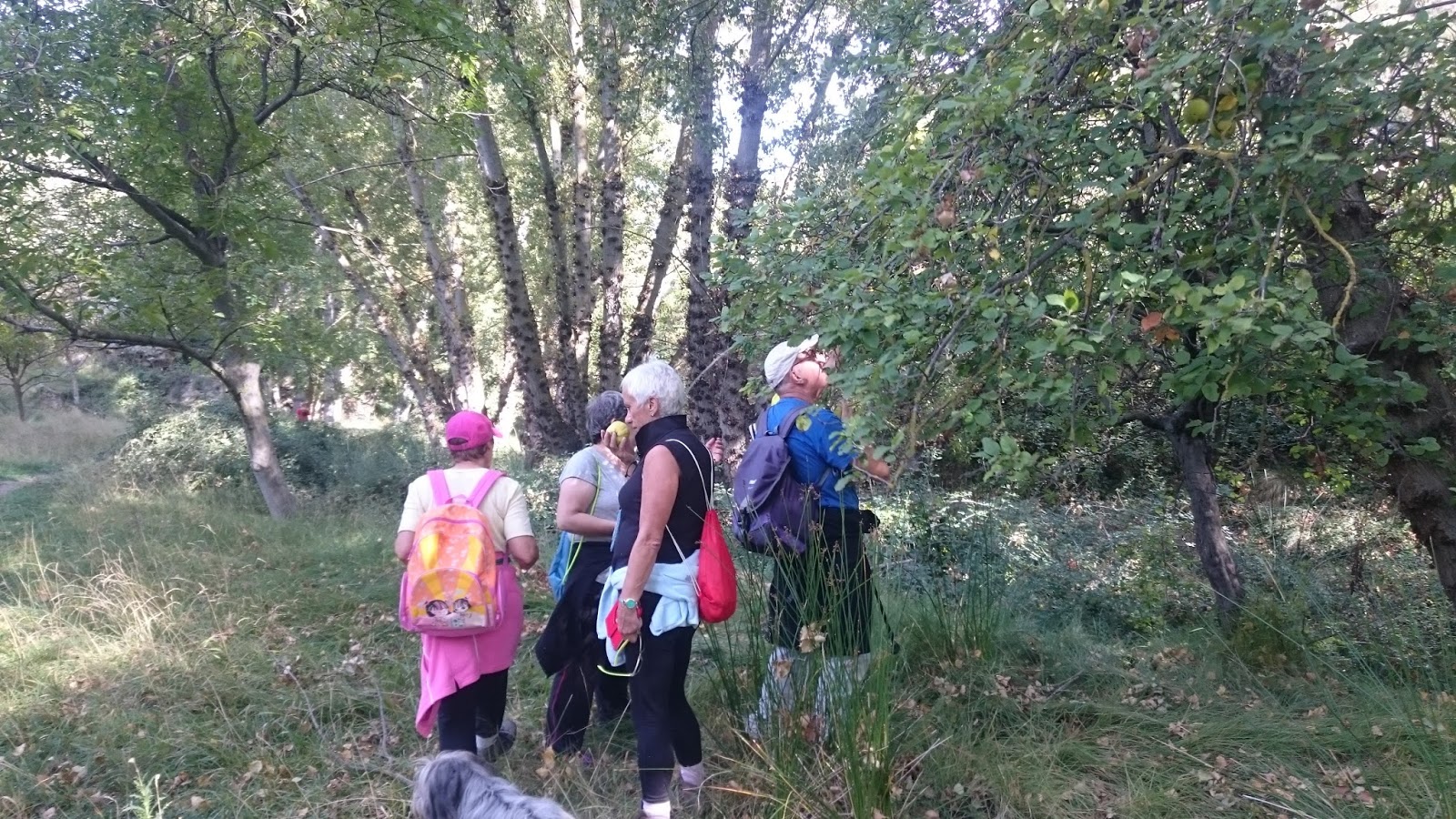 Pie en tierra, echamos a andar desde la plaza Mayor, a pie de la iglesia de Ntra. Sra. de los Milagros, cruzando la villa hasta llegar al Camino de Petaroldan entre tierras de labor, teniendo a nuestra izquierda el cauce del río. Pasamos por zonas de moras y majuelos que aprovechamos que degustamos, además de frondosos nogales que habían dejado su fruto a sus para que pudiéramos degustar.